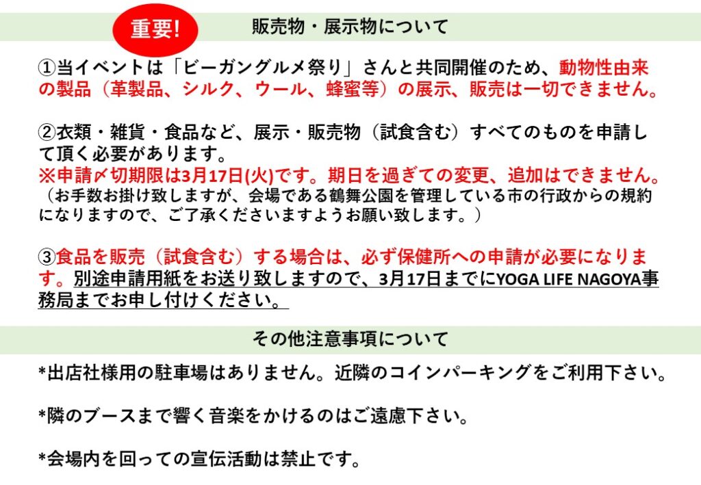 YOGA LIFE NAGOYA 2026春 出店規約